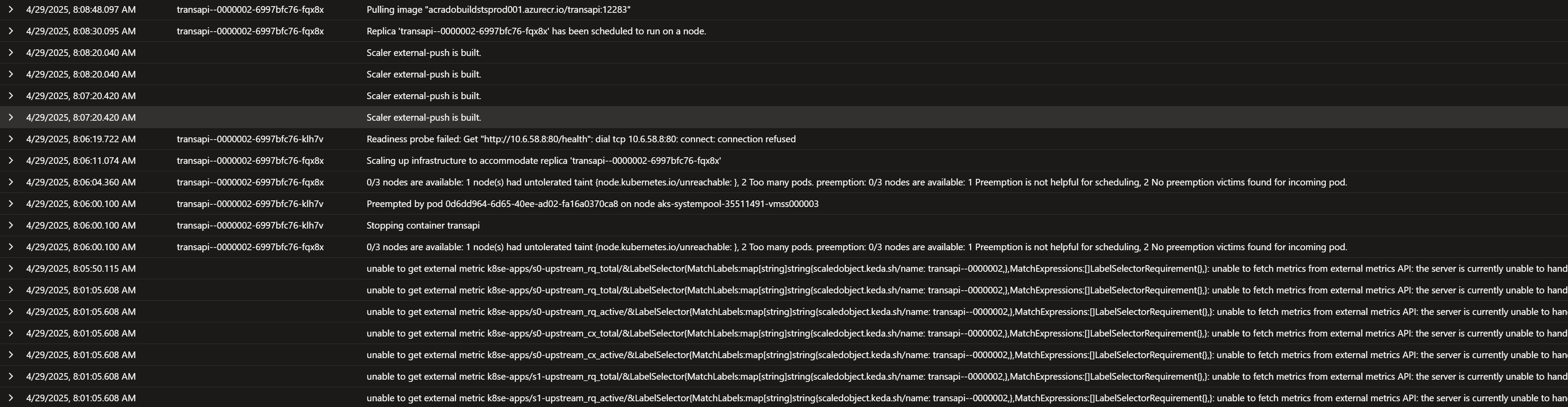 As mentioned earlier, ACA apps are generally stable in production. However, I have experienced cases where the underlying node became unreachable or have another untolerated taint, causing apps to be recreated on new nodes. After moving the affected workloads to a dedicated plan, I have not seen this issue recur. This appears to be a platform-level problem. Microsoft support has yet to provide a definitive answer. For production workloads, I recommend using dedicated plans for improved reliability, but be aware that dedicated plans are significantly more expensive than consumption plans. At the time of writing, a dedicated plan with 3 instances at the smallest size (4 vCPU, 16 GiB RAM) will cost close to $700 per month. See Azure Pricing Calculator for more details.